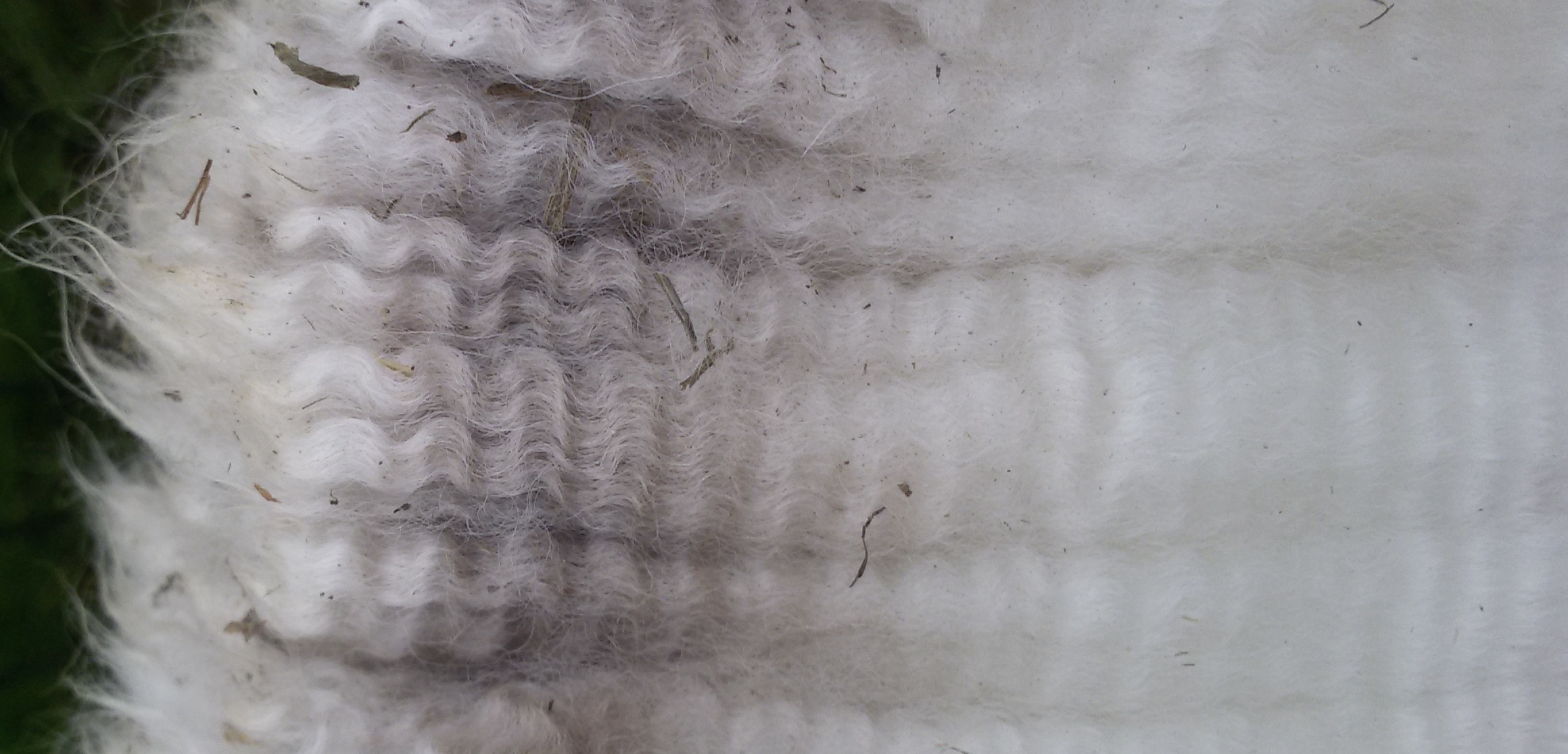 en fijne (14,3 µm) wol waarin bundeling en mooie krimp te zien is